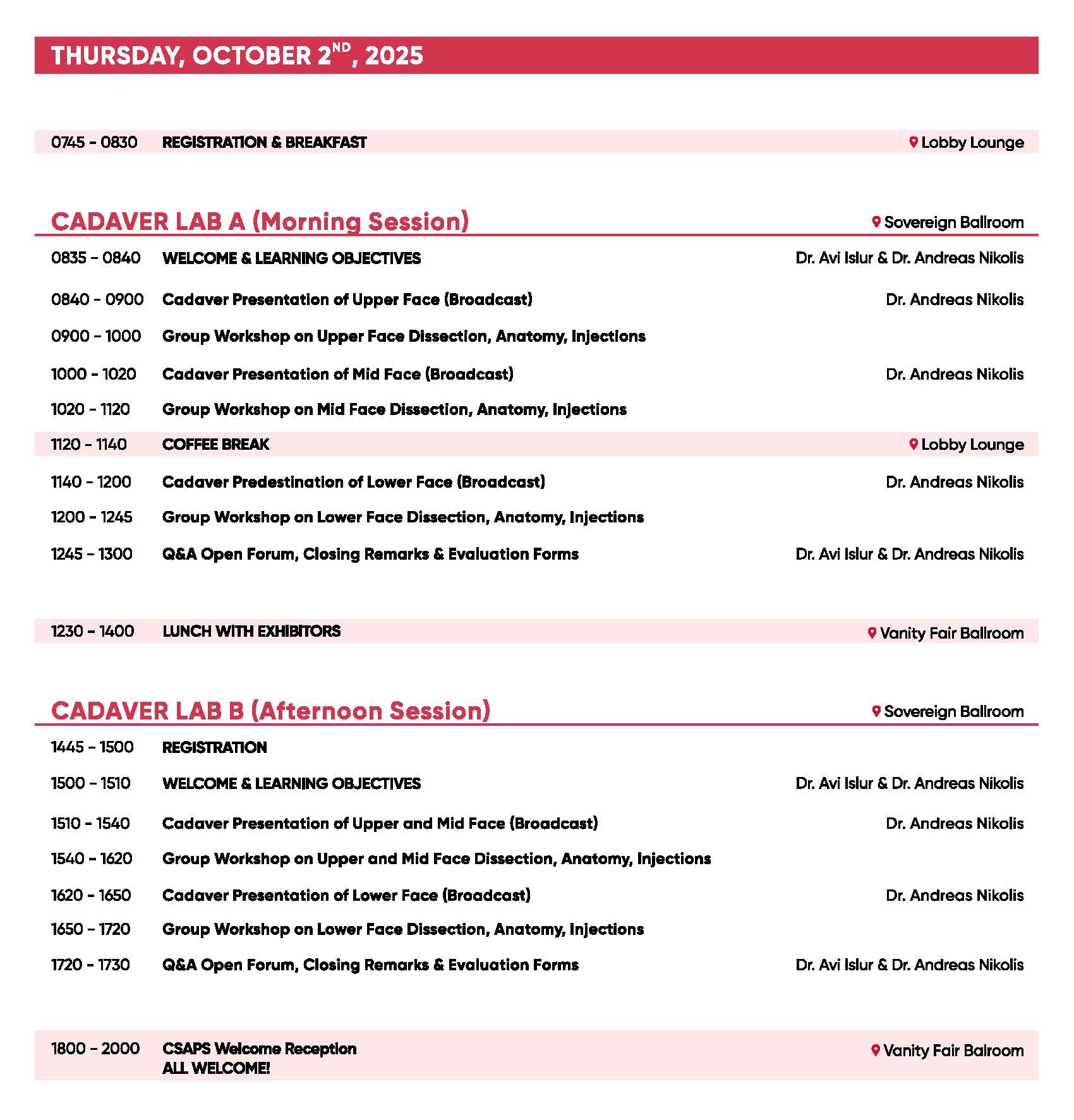 – Registration for Cadaver Lab does NOT include full meeting registration.