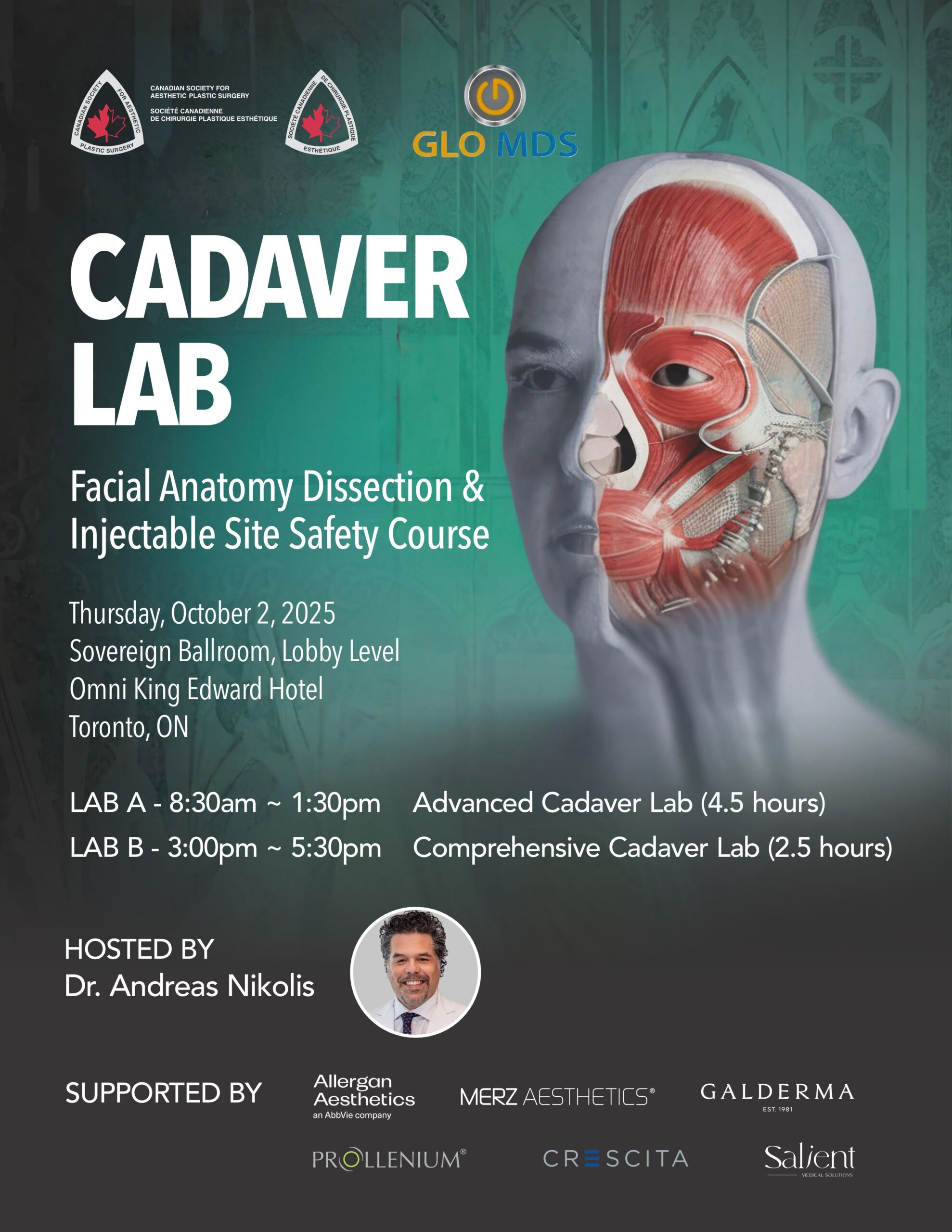 Join Dr. Andreas Nikolis and your favourite injectable partners for the first ever CSAPS Cadaver Lab – onsite at the 2025 Annual Meeting!